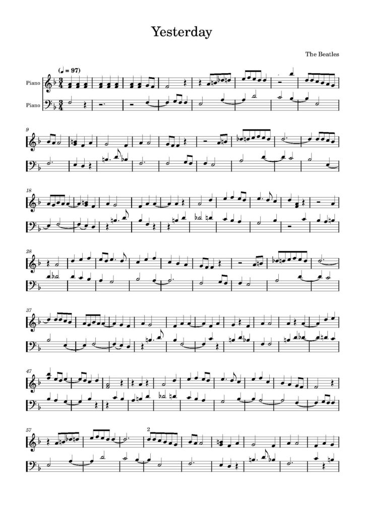 Yesterday – Nuty Na Pianino (piano sheet music)